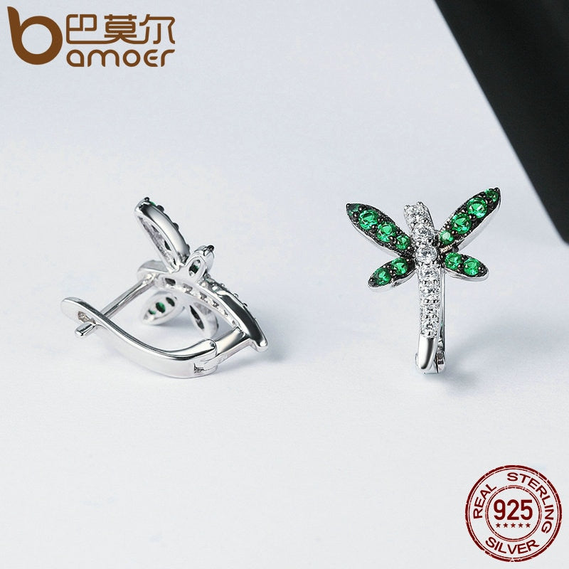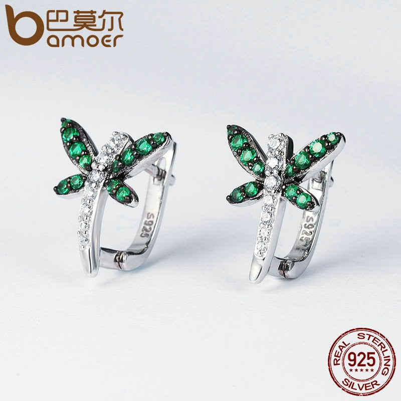 Authentic 925 Sterling Silver Dragonfly Whispers Clear CZ Hoop Earrings