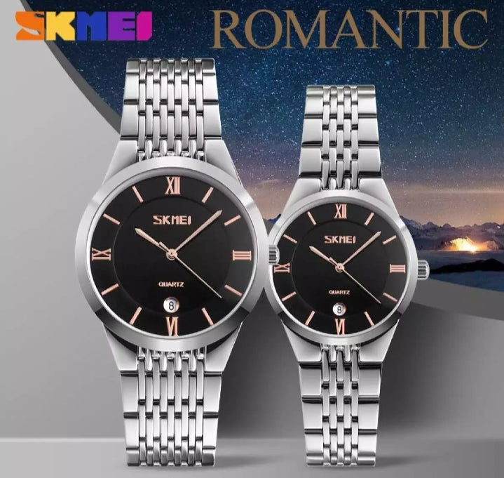 Skmei fashion couple Quartz stainless steel simple waterproof watch.