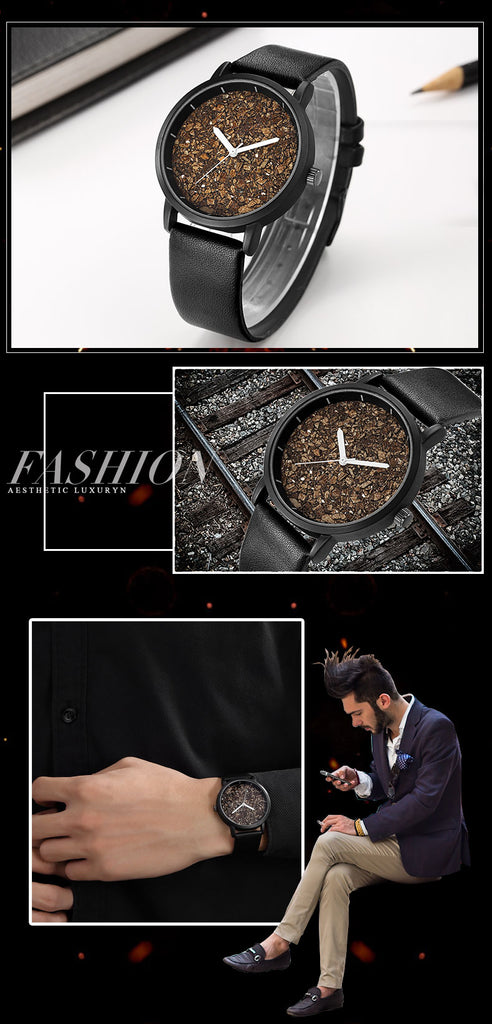 Natural Gravel Stone Face Men Brand Quartz Watches