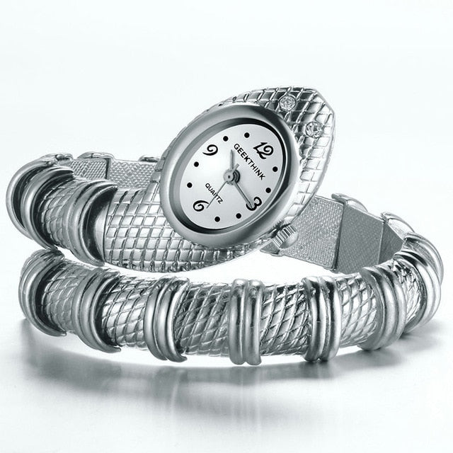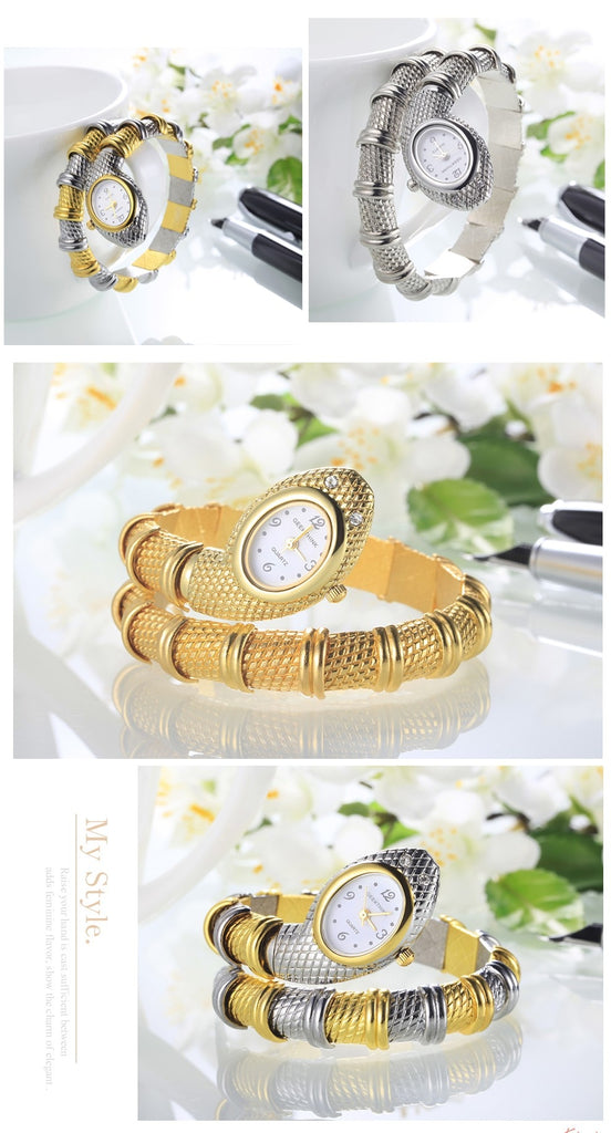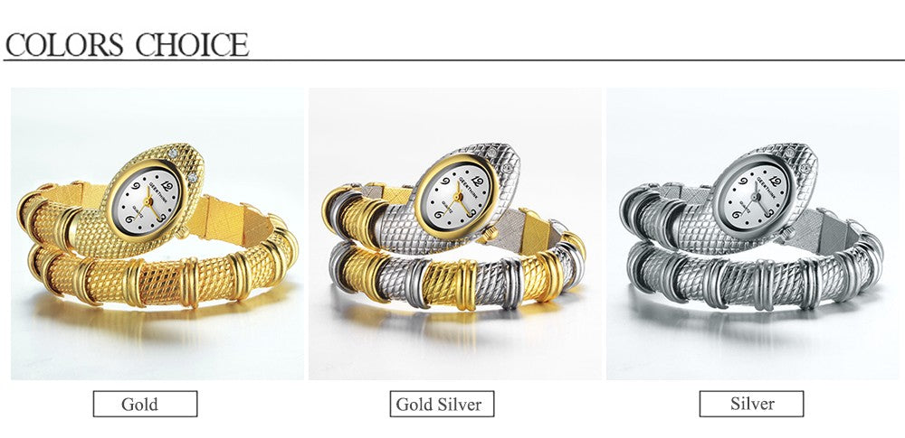 Unique Fashion Quartz Watch women Snake Shaped Bracelet Watch Diamond Ornaments Luxury Silver Gold