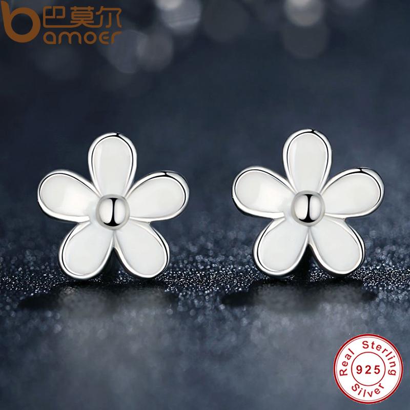 925 Sterling Silver Darling Daisy Stud Earring White Enamel With Clear CZ