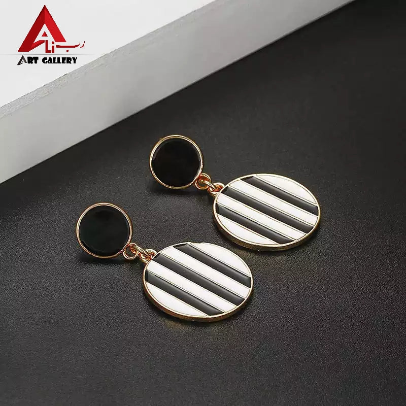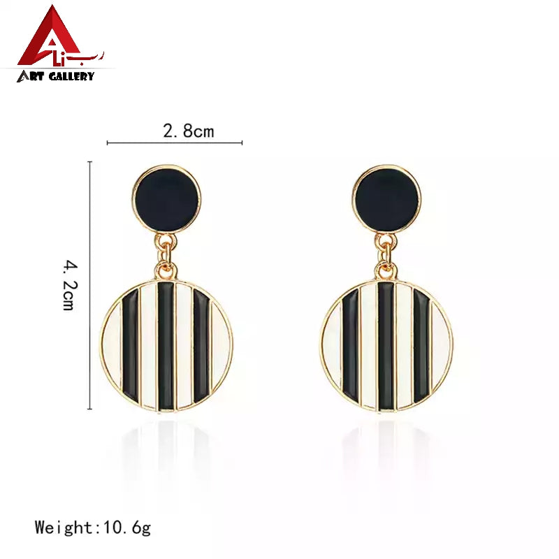 fashion personality Double round earrings black and white striped jewelry Simple temperament Beautiful metal earrings punk women 2019 .