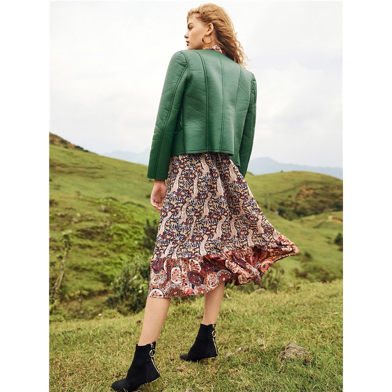 Green Weekend Casual Double Breasted Faux Coat 2018 Autumn Office Women Coats