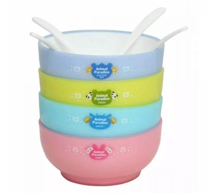 8 piece of Animals paradise cartoon 4 bowls and 4 spoon