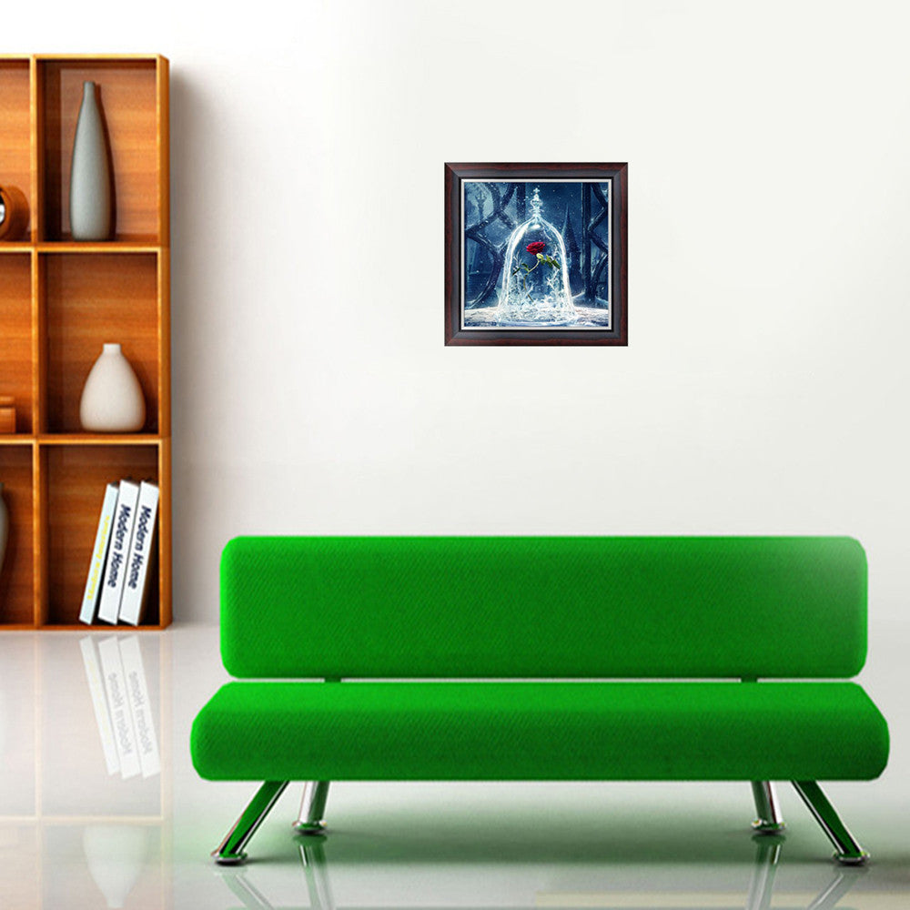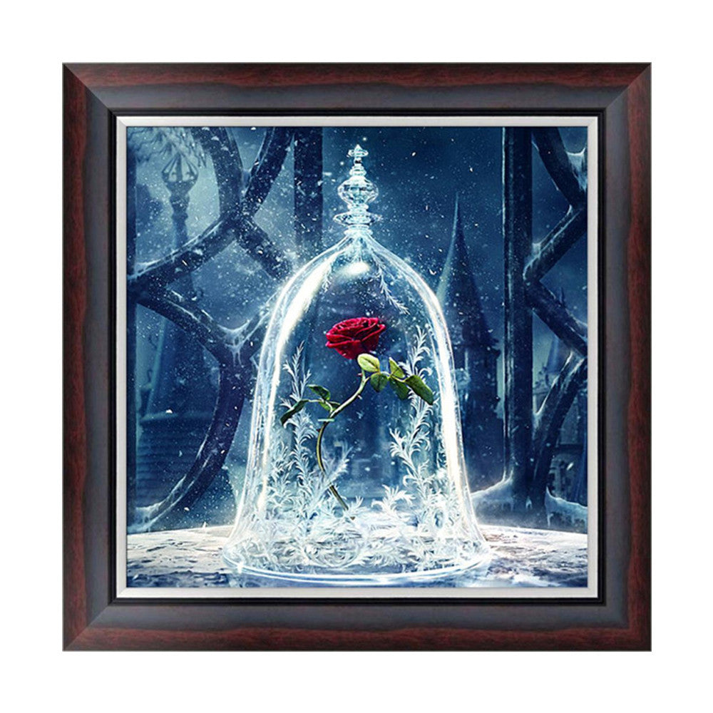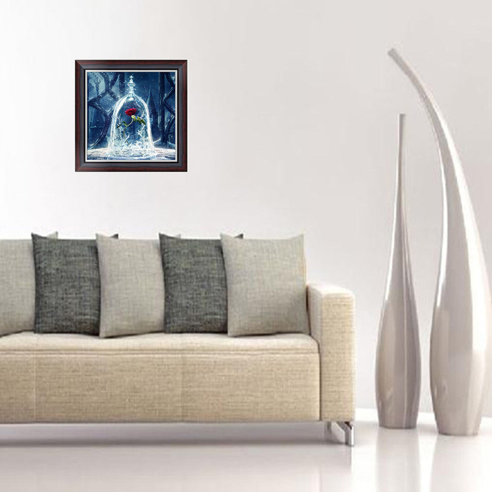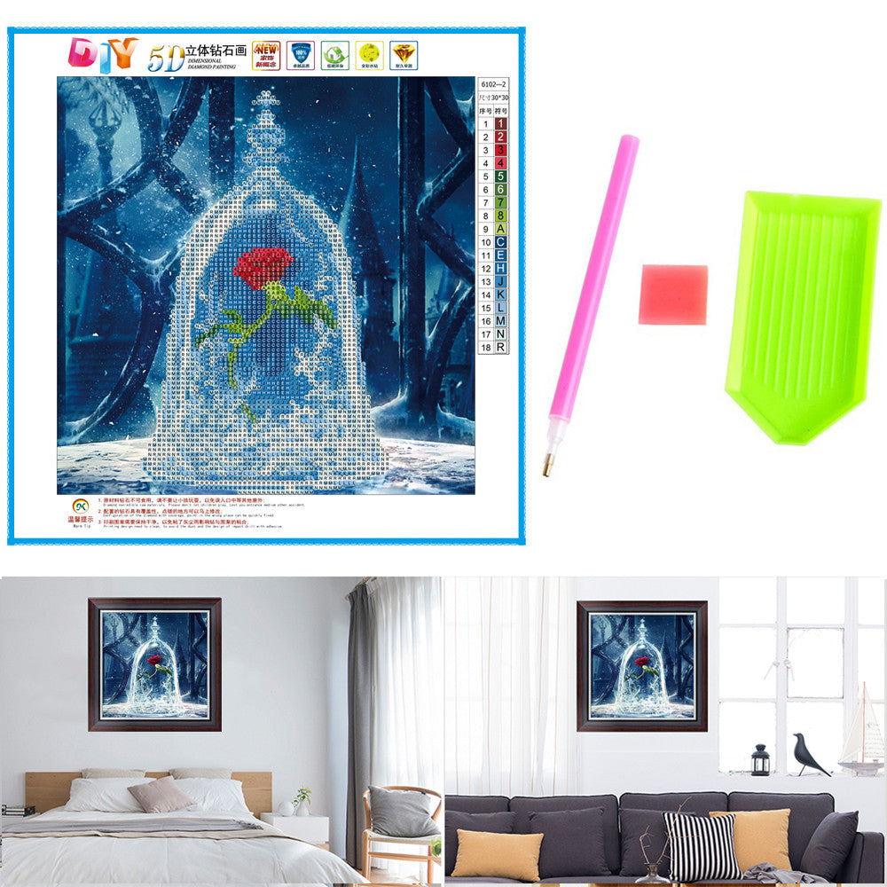 The canvas printed clear cross stitch Rose pattern, accurately sticking the rhinestone bead on the canvas. No need ironing, only need to press the pattern by book or hand.
