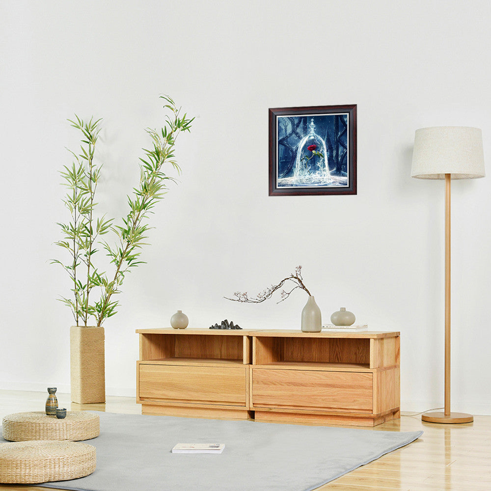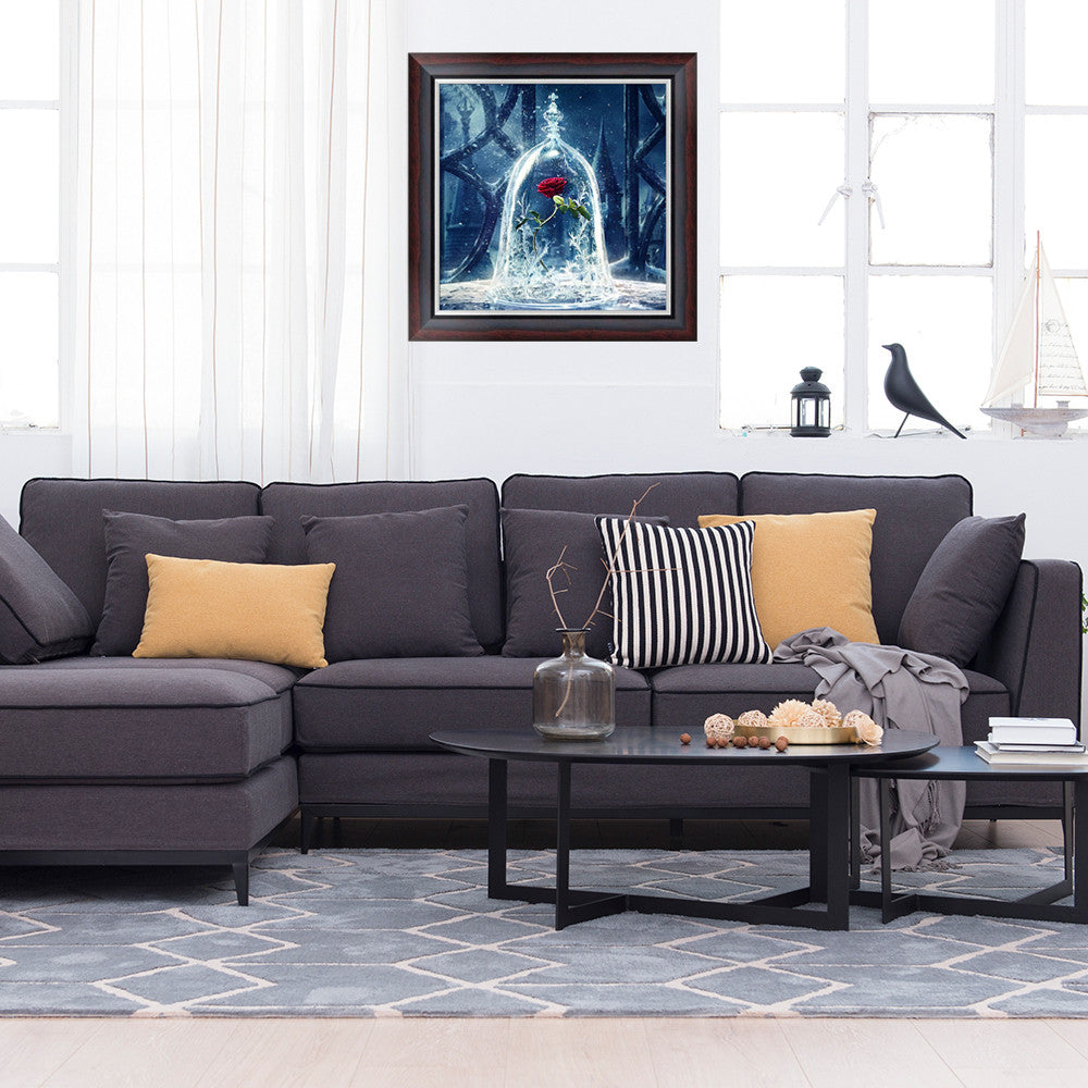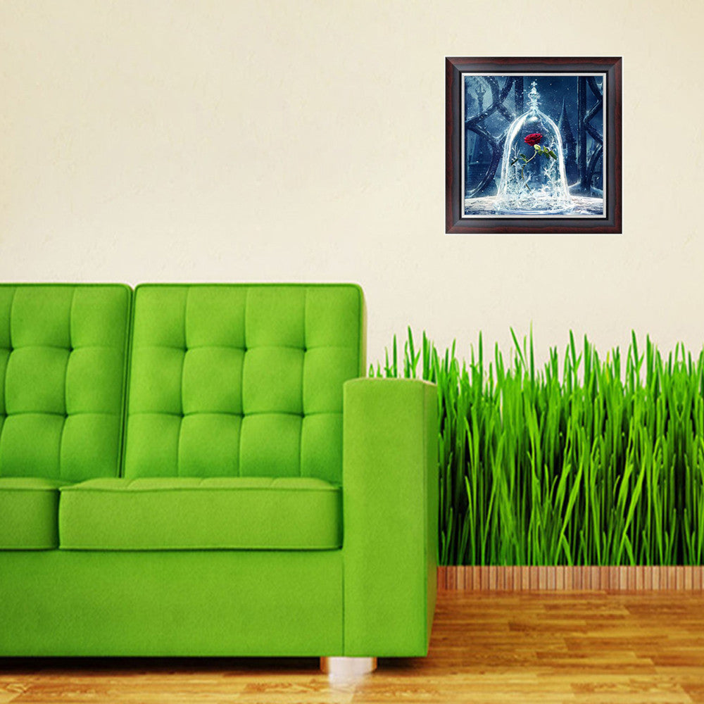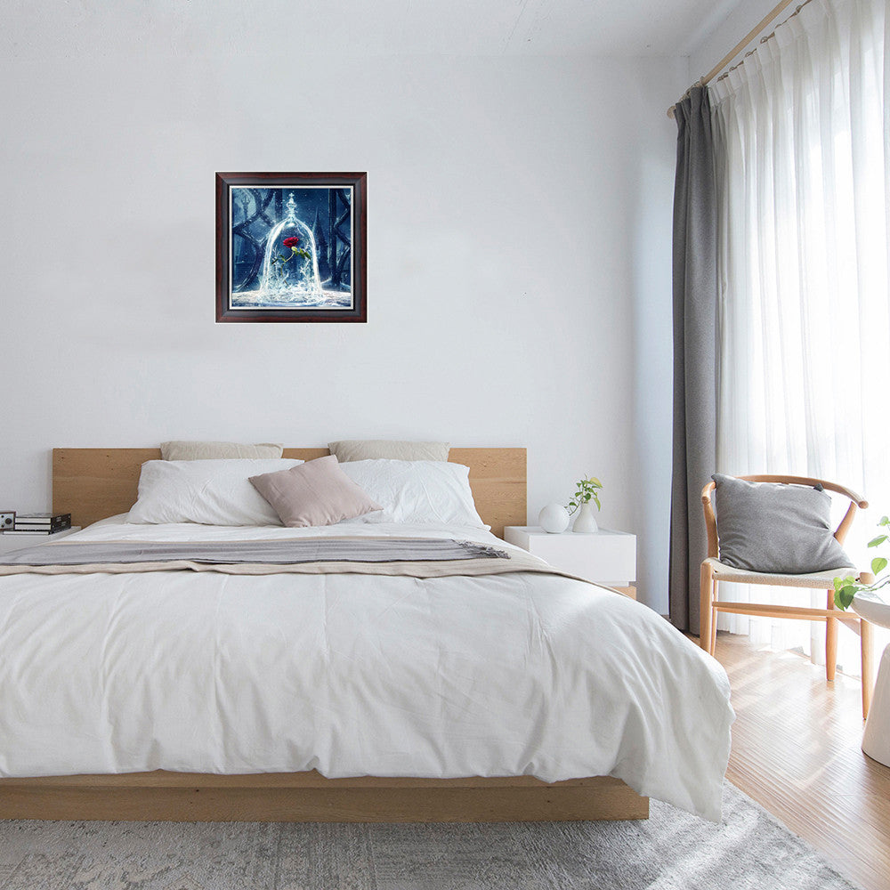The canvas printed clear cross stitch Rose pattern, accurately sticking the rhinestone bead on the canvas. No need ironing, only need to press the pattern by book or hand.