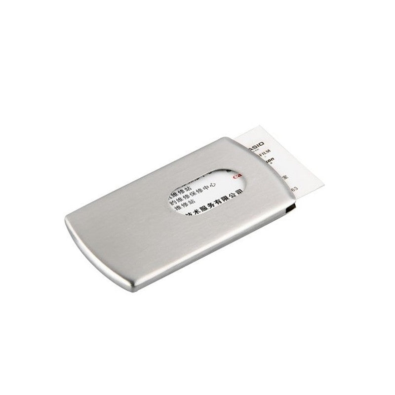 The item is a simple, fashion and practical business card holder case, which is mainly made of durable brushed stainless steel material, and ideal for storing 15 to 20 business cards and also suitable for ID cards and credit cards. Slide out design allow the cards to smoothly slide out only with a press of your thumb. Therefore, it is a perfect gift for cool person like you.