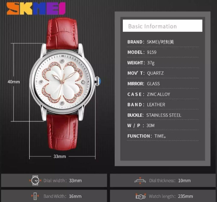 SKMEI fashion Ladies Leather Straps Quartz Waterproof Casual.