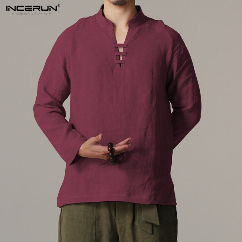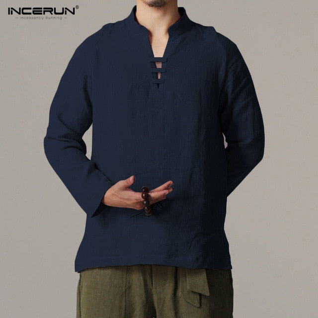 Men Long Sleeve Slim Fit Shirt Male Vintage Retro
